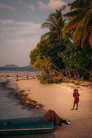 A young West Papuan Mother and her child enjoying sunset on a small island in the Raja Ampat archipelago.