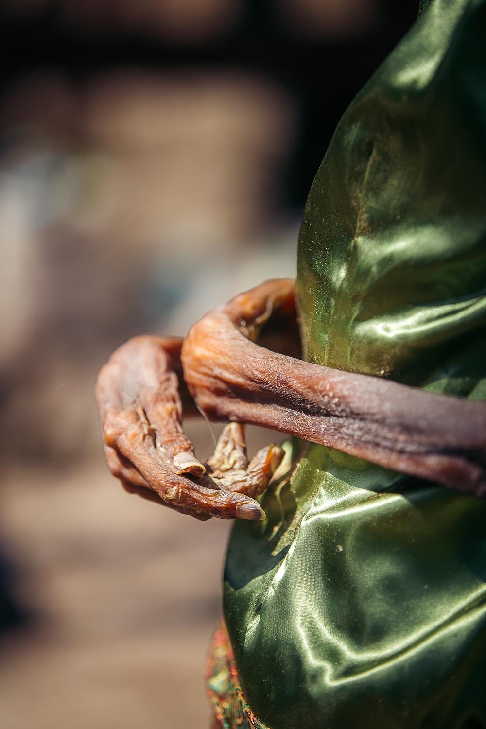 Her funeral ceremony was held 40 years prior to taking this photograph. She deceased another 25 years before the ceremony. Yet at no point has she been considered "dead" - her soul lives on with the descendants, and once every couple of years, they come to visit her resting ground. They open the coffin, stand her up straight, give her a new dress and her regular set of reading glasses, and celebrate life and family reunion, until at dusk they place her back into her freshly cleaned coffin and put her back to temporary rest.